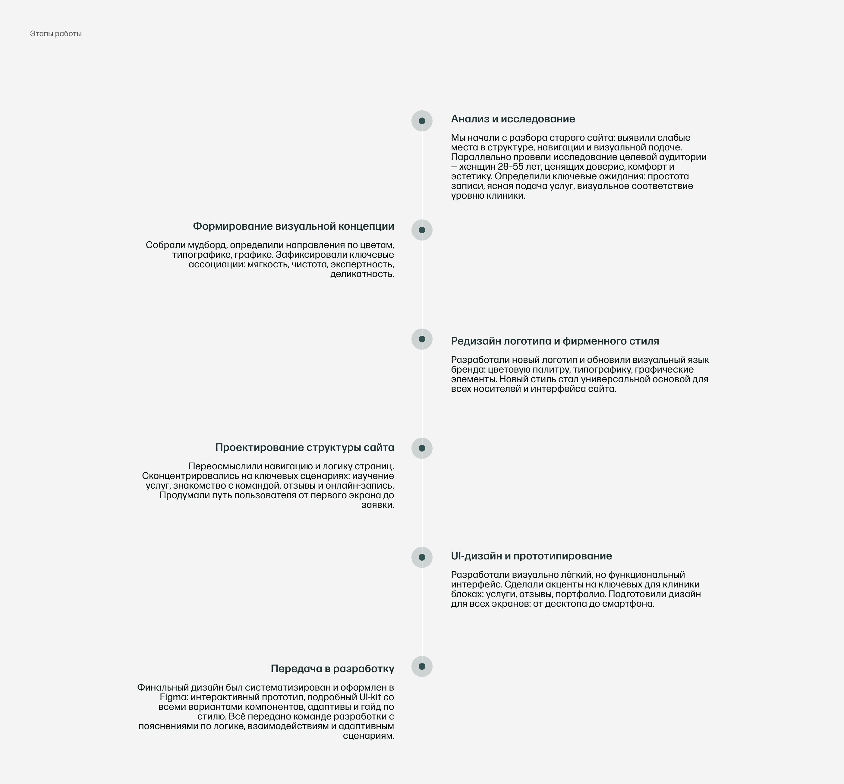 Впереди еще много работы с съемками и контентом для каждой посадочной страницы, каждой услуги, но уже сделан редизайн, все продуманно с маркетинговой точки зрения и перспектив в SEO, собран современный сайт на стеке: