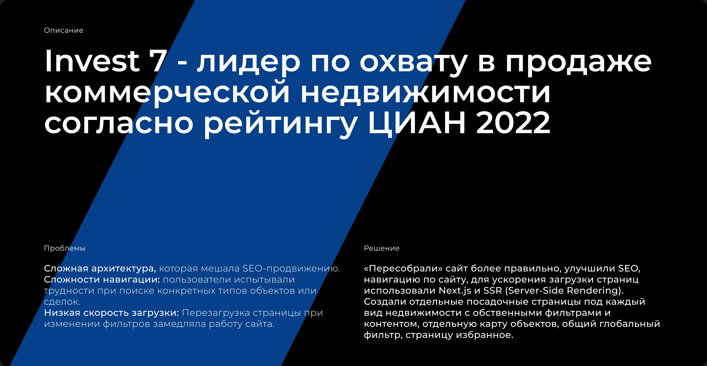 Улучшение SEO: Разделение объектов на отдельные посадочные страницы по типам сделок и объектам позволило поисковым системам более эффективно индексировать сайт.